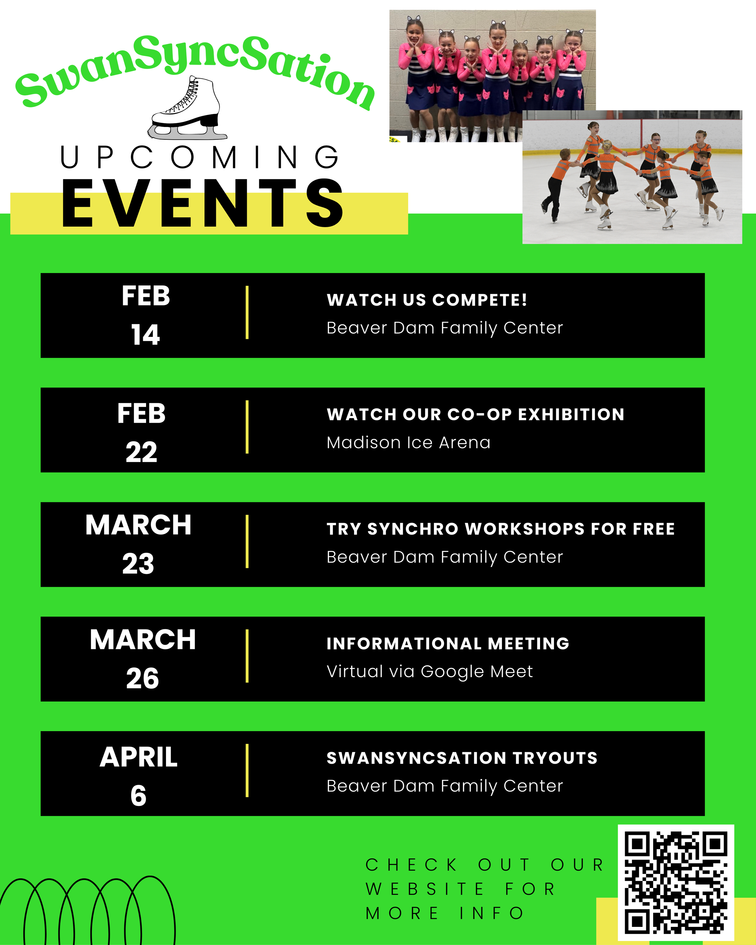 Latest events, Tryout information and Synchro workshops are posted on “Everything Synchro” under classes and on the events tab under Swansyncsation Tryouts